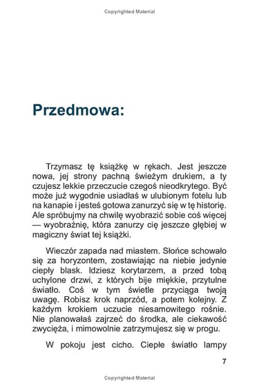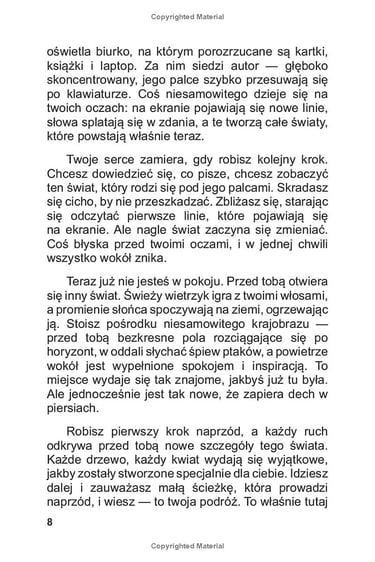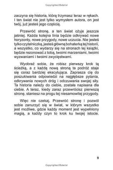 "Magia podróży w głąb siebie” to pierwsza część serii książek o wewnętrznym rozwoju i samopoznaniu, skierowana do młodych ludzi, zwłaszcza dziewcząt, która ma inspirować do odkrywania swojej prawdziwej siły. Książka przenosi czytelniczki w magiczną podróż po ich wewnętrznym świecie, gdzie każda napotkana osoba, każde wyzwanie i chwila stają się krokiem w stronę głębszego zrozumienia siebie.
